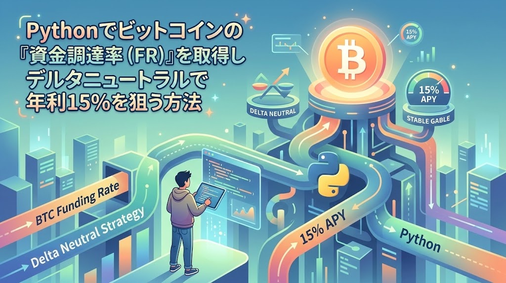 それが「デルタニュートラル戦略」です。この手法は、Pythonを使って特定のデータを監視することで、リスクを極限まで抑えながら年利15%前後の収益を狙うことができます。この記事では、難しい専門用語を噛み砕きながら、初心者でも今日から「勝手に資産が増えていく仕組み」を作れるよう、具体的なコード付きで解説します。