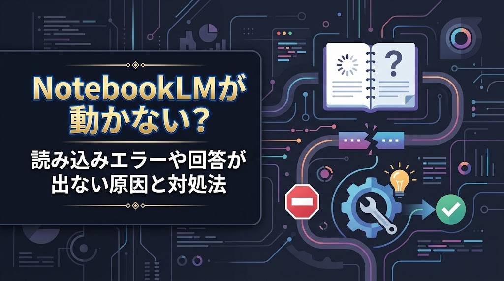 実は、NotebookLMが動かなくなる原因は、資料の形式やブラウザの設定など、身近なところに隠れていることがほとんどです。この記事では、読み込みエラーの正体から、回答が出ないときの具体的な解決策まで、誰でも今すぐ試せる方法をわかりやすく紹介します。