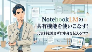 NotebookLMで作ったノートブックは、自分一人で使うだけでなく、チームのメンバーと共有して共同で作業を進めることができます。Googleドライブの共有設定と似た感覚で操作できるため、導入のハードルは低いです。