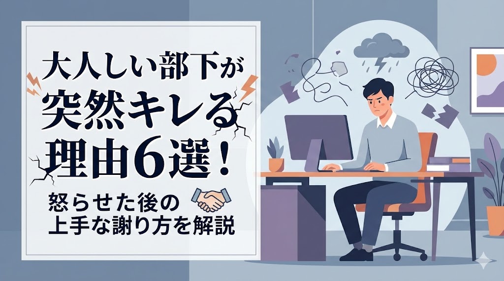 「いつも穏やかで、文句一つ言わずに仕事をしてくれる部下が、突然別人のように激昂した」 そんな光景を目の当たりにすると、頭が真っ白になってしまいますよね。 大人... -