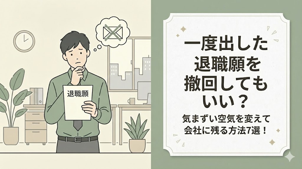 「勢いで退職願を出したけれど、やっぱり今の会社で頑張りたい」と後悔していませんか。 一度言い出したことを引っ込めるのは、自分勝手で恥ずかしいことだと自分を責め... -