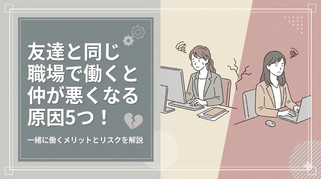 「友達と一緒に仕事ができたら毎日が楽しそう!」と考えたことはありませんか。 しかし、現実はそう甘くはなく、職場が同じになった途端に関係がギクシャクして悩む人が... -