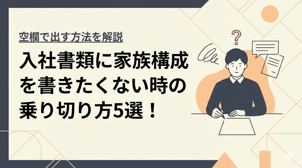せっかく内定をもらったのに、入社書類の「家族構成」という項目を見て、手が止まってしまった。 そんな経験はありませんか。 家族の職業や年齢を会社に教えることに、... -