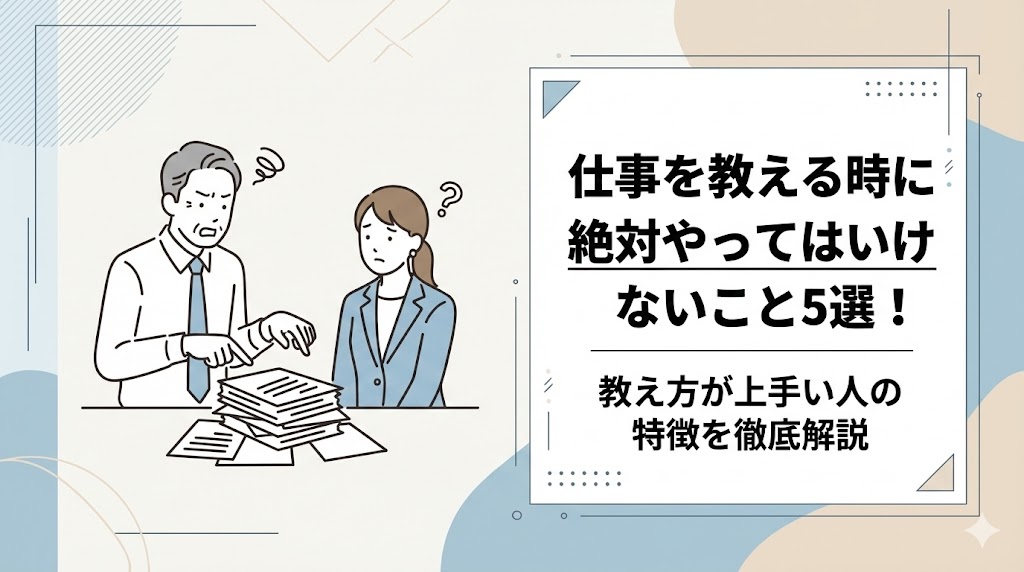 後輩や新人に仕事を教える際、なぜかうまく伝わらずにイライラしてしまうことはありませんか。一生懸命に説明しているのに、相手が同じミスを繰り返すと、自分の教え方... -