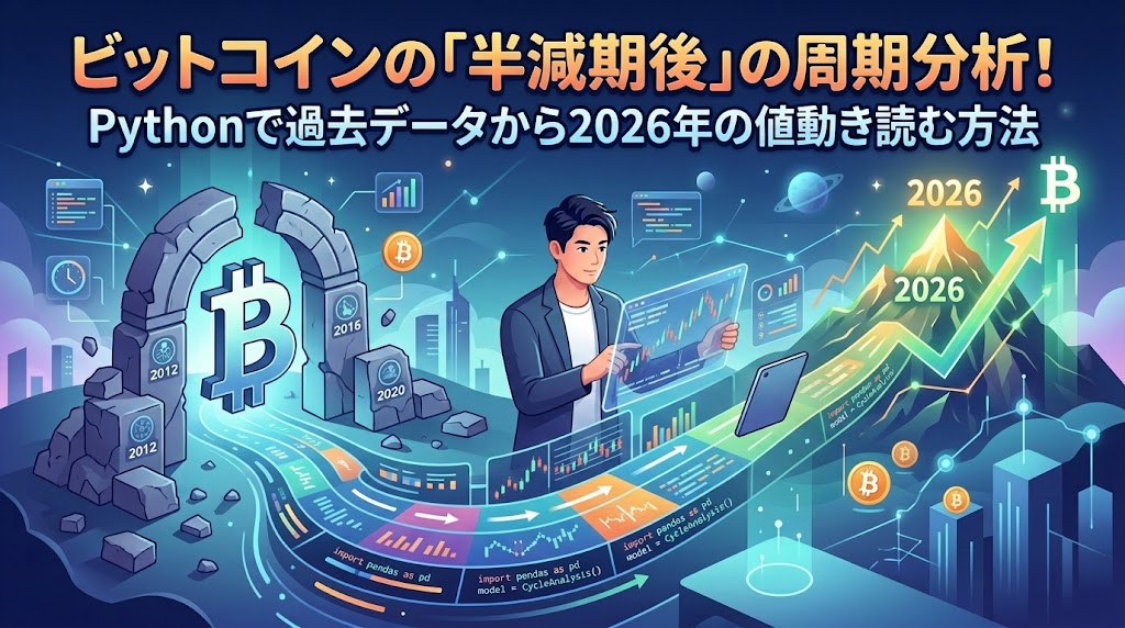 ビットコインの「半減期後」の周期分析!Pythonで過去データから2026年の値動き読む方法